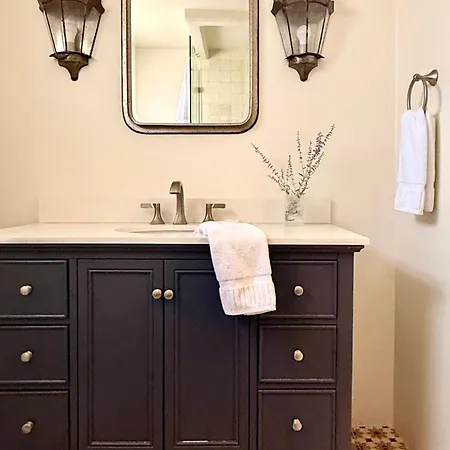 La villa Dos Hermanas Casita 2 Downtown Courtyard te da la bienvenida con vistas al jardín. Los cuartos de baño también disponen de un inodoro separado. Para mayor comodidad, ofrece secadores de pelo, albornoces y toallas.
